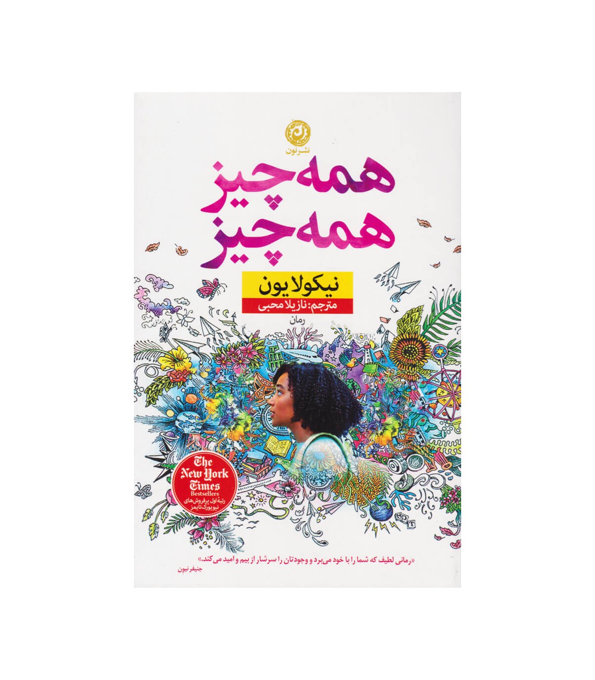 کتاب همه چیز همه چیز، رمانی نوشته ی نویسنده ی آمریکایی، نیکولا یون است که نخستین بار در سال 2015 منتشر شد. داستان این رمان به دختری هجده ساله به نام مَدی می پردازد که به خاطر ابتلا به بیماری «نقص ایمنی مرکب شدید» تحت درمان است و از همین رو نمی تواند خانه را ترک کند یا با هر چیز غیربهداشتی تعامل داشته باشد. دنیای مدی را مادر، پرستار و کتاب های مورد علاقه اش شکل داده اند و پدر و برادرش سال ها پیش از دنیا رفته اند. روزی خانواده ای به همسایگی خانه ی مدی می آیند و او از پنجره، اسباب کشی این خانواده را به نظاره می نشیند. اُلی، پسر این خانواده است که با گذشت زمان، رابطه ی دوستانه ای با مدی تشکیل می دهد و به بزرگترین ریسکی تبدیل می شود که مدی تا به حال با آن مواجه شده است.